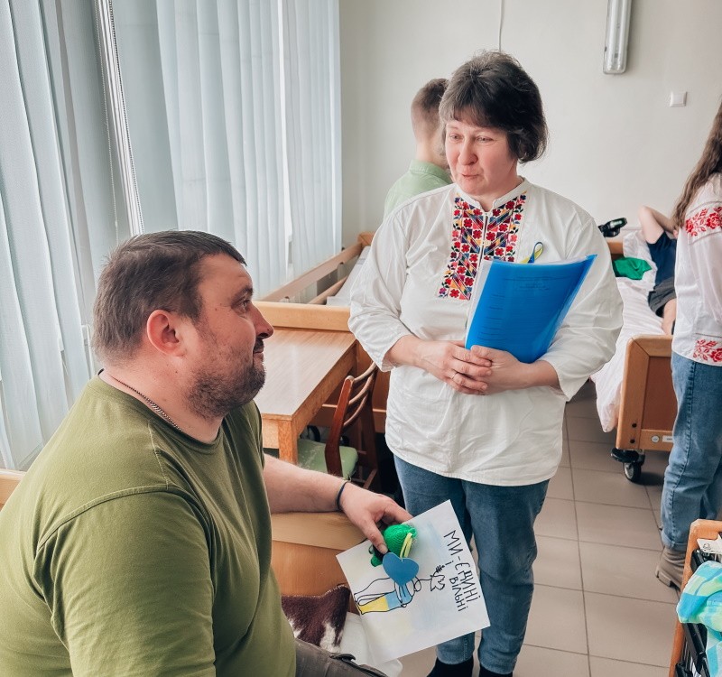 У День Єднання України вихованці Будинку культури Департаменту культури, туризму, молоді та спорту ВК ВМР та Вараської міської публічної бібліотеки філії с. Більська Воля приїхали привітати бійців, що проходять курс реабілітації у Вараській багатопрофільній лікарні.